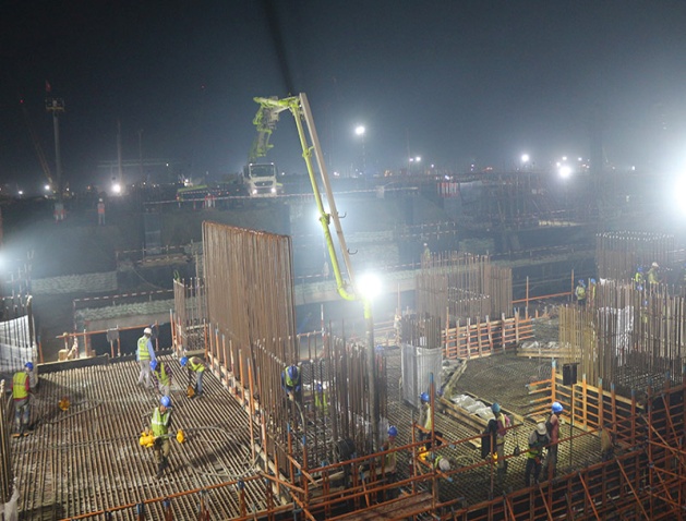 在緊張的工期形勢(shì)面前,艾薩拉姆項(xiàng)目部的2000多名中孟員工不分晝夜地緊張忙碌著,為完成當(dāng)月混凝土澆筑任務(wù),項(xiàng)目部成立了專題施工小組,小組成員從澆筑所需原材料、機(jī)械配置到澆筑過程控制等方面進(jìn)行了系統(tǒng)策劃。通過專題會(huì)議、開展培訓(xùn)等形式,對(duì)參與施工人員進(jìn)行了詳細(xì)的安全、質(zhì)量、技術(shù)交底,并針對(duì)澆筑過程中可能發(fā)生的安全、質(zhì)量風(fēng)險(xiǎn)制定了相應(yīng)的預(yù)控措施,全力保障澆筑工作順利進(jìn)行。