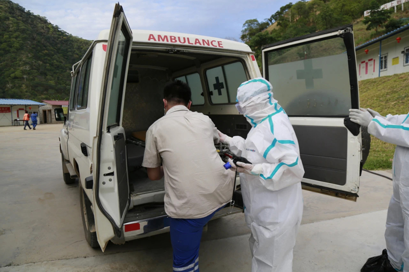 項(xiàng)目部組織疫情防控應(yīng)急演練,模擬中贊職工發(fā)生體溫異常等疑似癥狀后的應(yīng)急處置步驟,組織項(xiàng)目醫(yī)務(wù)室人員前往現(xiàn)場(chǎng)進(jìn)行初步診斷,報(bào)告援贊比亞醫(yī)療隊(duì)進(jìn)行再次問(wèn)診,同時(shí)做好人員疏散和密切接觸者排查隔離工作,醫(yī)護(hù)人員及救護(hù)車(chē)司機(jī)等做好全套防護(hù),演練現(xiàn)場(chǎng)秩序井然,步驟合理,提高了項(xiàng)目疫情防控應(yīng)急管理能力。