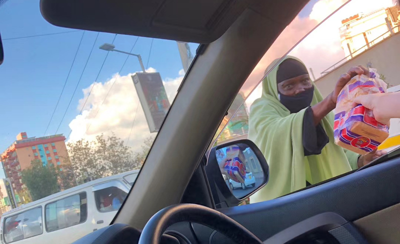 疫情導(dǎo)致的經(jīng)濟(jì)活動減少給當(dāng)?shù)孛癖妿砹瞬恍〉纳鎵毫ΑT诓荒芗皶r(shí)自制面包的時(shí)候,她還會購買面包發(fā)給大家。她說,希望自己的面包能夠讓需要幫助的人在疫情期間好過一點(diǎn)。送面包這一小小善舉看似杯水車薪,但對于接受幫助的個(gè)人無疑是雪中送炭。沒有怨言,不畏辛苦,在其身懷六甲的情況之下,她還在力所能及地主動奉獻(xiàn)愛心,成為了內(nèi)羅畢街頭閃現(xiàn)的一道靚麗風(fēng)景。