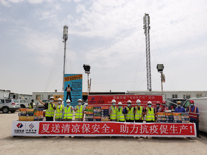 活動于當天早上九點鐘開始,周輝煌向項目部現場辦公區域、各工區現場的中方和外籍員工表示慰問和感謝,感謝他們不畏酷暑,堅守崗位,辛勤付出,同時,他要求各區負責人要全力做好高溫天氣下員工的防暑降溫和勞動保護工作,圍繞新冠肺炎疫情防控期間的發布的復工復產工作要點扣安全生產主題,切實提高全員安全生產和自我防疫防護意識,營造一個良好的安全生產環境,確保員工人身安全和健康。