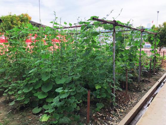 在吃的法則里,風(fēng)味重于一切。蘇蘇人從來沒有把自己束縛在一張乏味的食品清單上。大廚懷著對(duì)食物的理解,在不斷的嘗試中尋求著轉(zhuǎn)化的靈感。工地的工作枯燥乏味,宿舍辦公室施工現(xiàn)場(chǎng),每天都是三點(diǎn)一線。一邊要忍受著因語言不通而和監(jiān)理業(yè)主造成的誤會(huì),一邊還要協(xié)調(diào)分包商的干活消缺,一天下來往往只顧得上胡亂扒上兩口飯,至于可口與否已經(jīng)不在味蕾的工作范圍之內(nèi)了。大廚看在眼里急在心里,長(zhǎng)此以往,不僅工作效率得不到保證,對(duì)員工的身心健康也是一大挑戰(zhàn)。他每天都在思考,如何才能讓現(xiàn)場(chǎng)員工吃得好吃的開心,還能吃出家鄉(xiāng)的味道。于是,蘇蘇后院的菜園子就這么悄悄地走來了。
